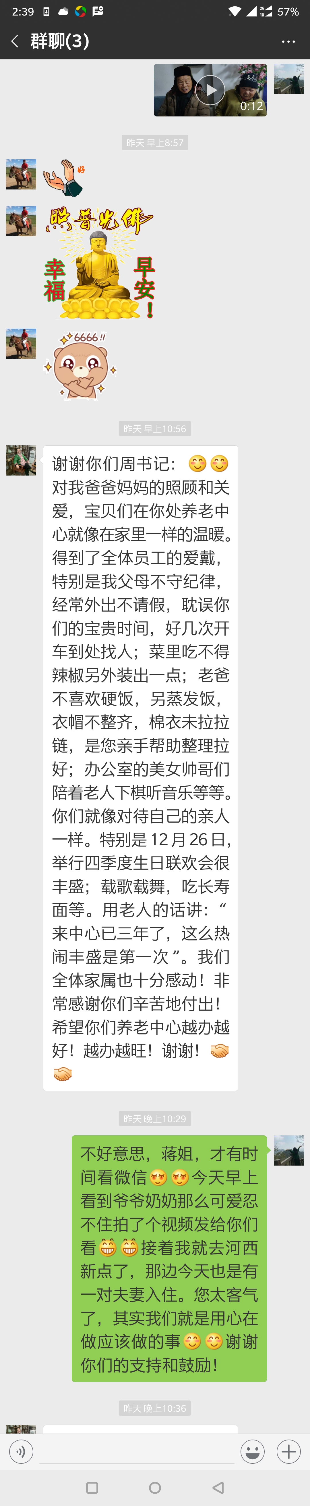 Ҏ(gu)爸爸妈妈的照֒关爱Q宝贝们在你处养老中心就像在安一L(fng)温暖。得C全体员工的爱_特别是我父母不守U律Q经常外Z请假Q耽误你们的宝贉|_好几ơ开车到处找人,菜里吃不得G椒另外装Z点,老爸不喜Ƣ硬饭,另蒸发饭Q衣帽不整齐Q棉未拉拉链,是?zhn)亲手帮助整理拉好Q办公室的美奛_哥们陪着老h下棋听音乐等{。你们就像对待自q亲h一栗特别是12?6日D行四季度生日联欢?x)很丰盛Q蝲歌蝲舞,吃长寉K{。用老h的话讜y来中心已三q了Q这么热闹丰盛是W一ơ”。我们全体家属也十分感动Q非常感谢你们辛苦地付出Q希望你们养老中心越办越好!办旺Q谢谢!