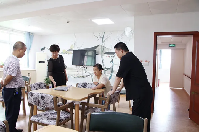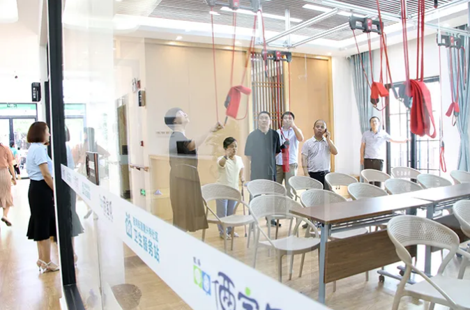 鍙傝浜?jiǎn)涓績(jī)鑽堁潃佹姢澹珯銆佸悍澶嶇孩緇沖鍔熻兘瀹ゃ佹櫤鑳藉寲搴峰鏈哄櫒浜鴻澶囬槼鍏夋埧銆佹櫤鑳藉寲鎶ょ悊鍨嬫牱鏉塊棿銆侀鍘呫佸帹鎴垮強(qiáng)鍋ュ悍綆$悊涓績(jī)銆佸ū涔愪腑蹇?jī)锛岒q朵笌鍏ヤ綇鑰佷漢浠翰鍒囦氦璋堬紝璇㈤棶浜?jiǎn)鑰佷漢鐨勮搗灞呴ギ椋熺瓑澶氭柟闈㈢殑鎯呭喌錛屽茍閫佷笂鏆栧績(jī)鐨勫仴搴風(fēng)紱忋?/span>