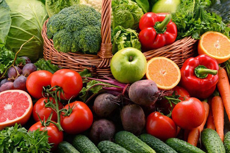 維生素C豐富的食物。新鮮的蔬菜和水果,尤其是綠色蔬菜和酸味較高的水果,如番茄、橘子、山楂等。