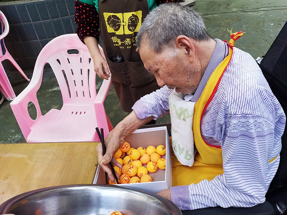 帶著這份初衷,為豐富長者們的生活,倡導(dǎo)健康生活方式,銀海倆寶貝組織長者們開展了“筷子夾乒乓球”趣味十足的游戲活動(dòng),吸引了所有長者的積極參與。