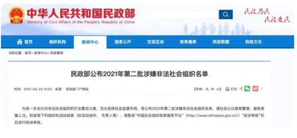 姘戞斂閮?鏈?4鏃ュ叕甯冧簡2021騫寸浜屾壒娑夊珜闈炴硶紺句細(xì)緇勭粐鍚嶅崟錛岃紺句細(xì)鍏紬鎻愰珮璀︽儠錛岄伩鍏嶅彈楠椾笂褰撱傚鍙戠幇涓嬪垪緇勭粐鐨勬椿鍔ㄧ嚎绱紙濡傛椿鍔ㄥ満鎵銆?璐熻矗浜虹瓑錛夛紝璇風(fēng)櫥褰曗滀腑鍥界ぞ浼?xì)缁劸l囨斂鍔℃湇鍔″鉤鍙扳濓紝鈥滄姇璇変婦鎶モ濇爮鐩繘琛屾姇璇変婦鎶ャ?span class="bjh-br">