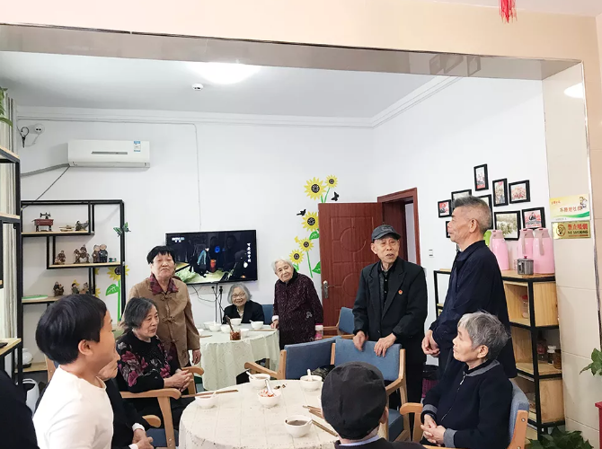易爺爺原園林管理局黨支部書記,1950年參軍,當(dāng)過警衛(wèi)員、參謀、連長,在座的長者平均年齡87歲,退休前也從事著各種各樣的工作,有人民教師、勞動工人、老紅軍和機關(guān)領(lǐng)導(dǎo)等等。董事長王朝暉女士一再強調(diào),“關(guān)愛今天的老人,即是關(guān)愛明天的自己”。