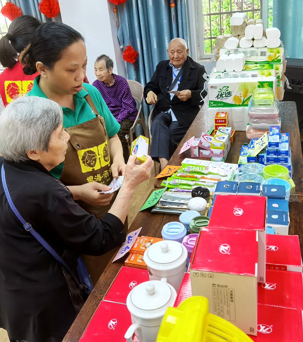 為善養(yǎng)老幸福銀行開業(yè)啦!衛(wèi)生紙、牙刷20幣,牙膏30幣,香皂40幣。。。。