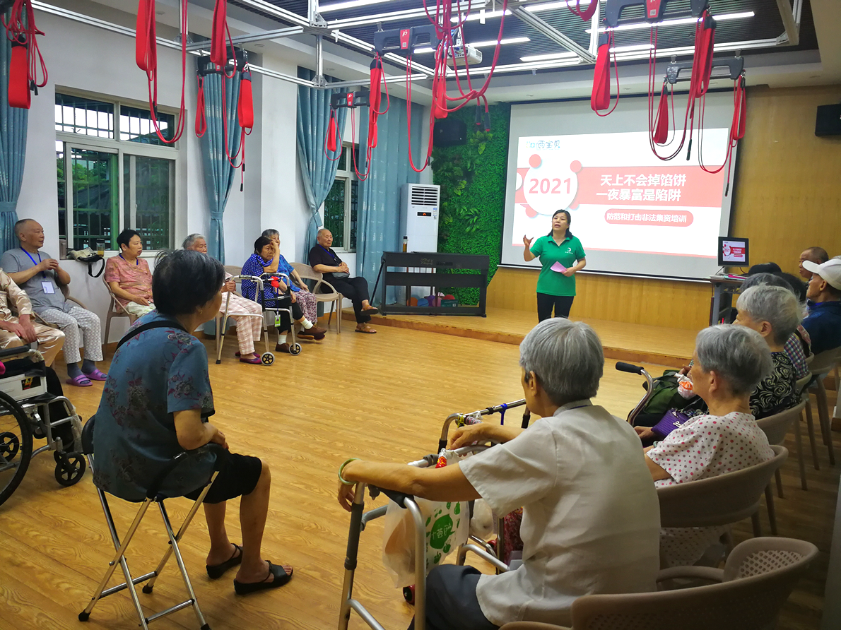 銀海倆寶貝窯灣康養(yǎng)中心開展防范非法集資宣傳活動,由黨支部書記周艷純主講。