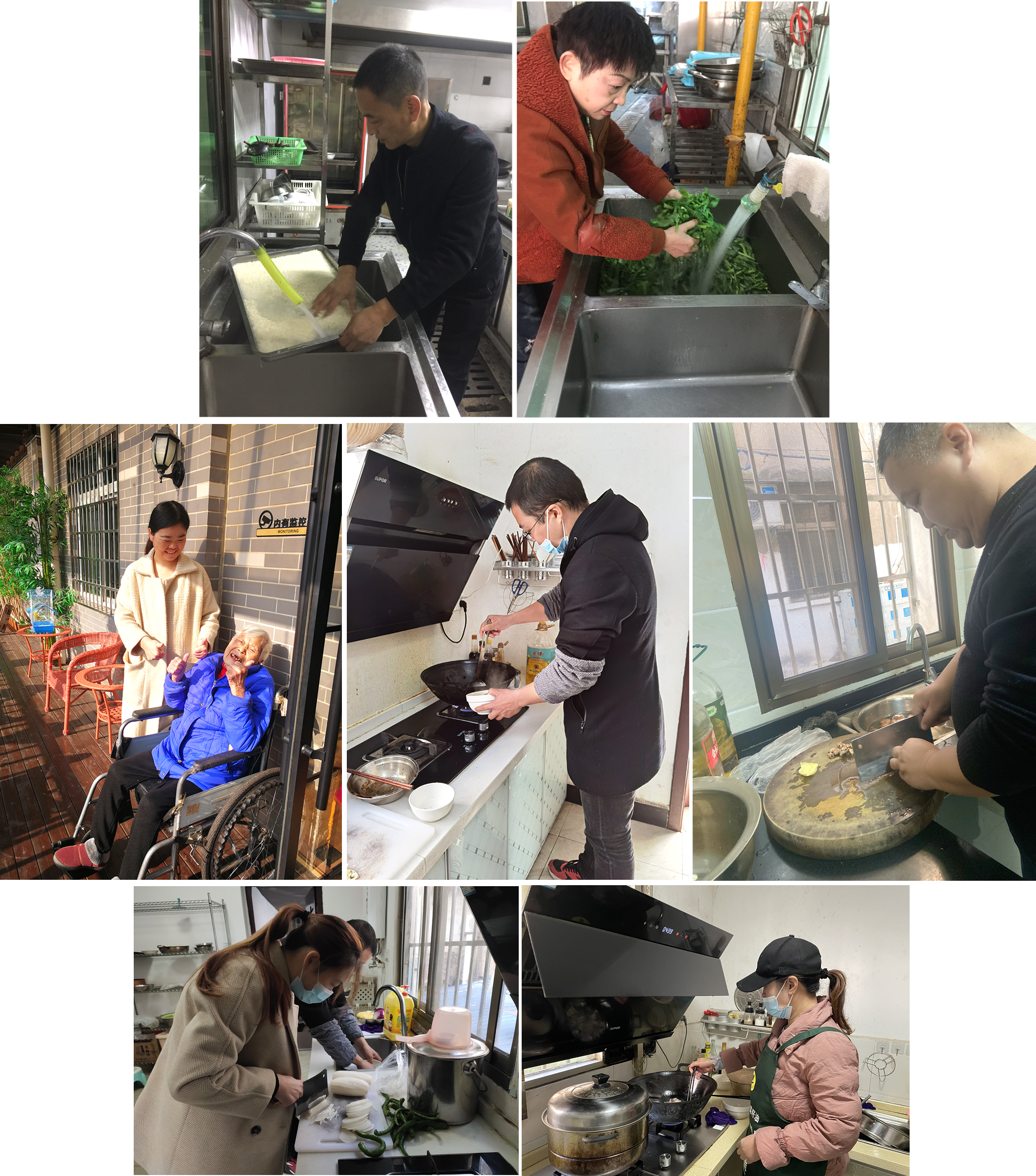 對(duì)接清楚后,每位同事都有條不紊的開(kāi)啟了工作...廚房幫廚...搞衛(wèi)生...帶爺爺奶奶們出去曬太陽(yáng)...更有同事大顯身手,為爺爺奶奶們制作可口的養(yǎng)生餐。(雖然可能沒(méi)有護(hù)理員姐姐們做的美味,但是滿滿的誠(chéng)意在)