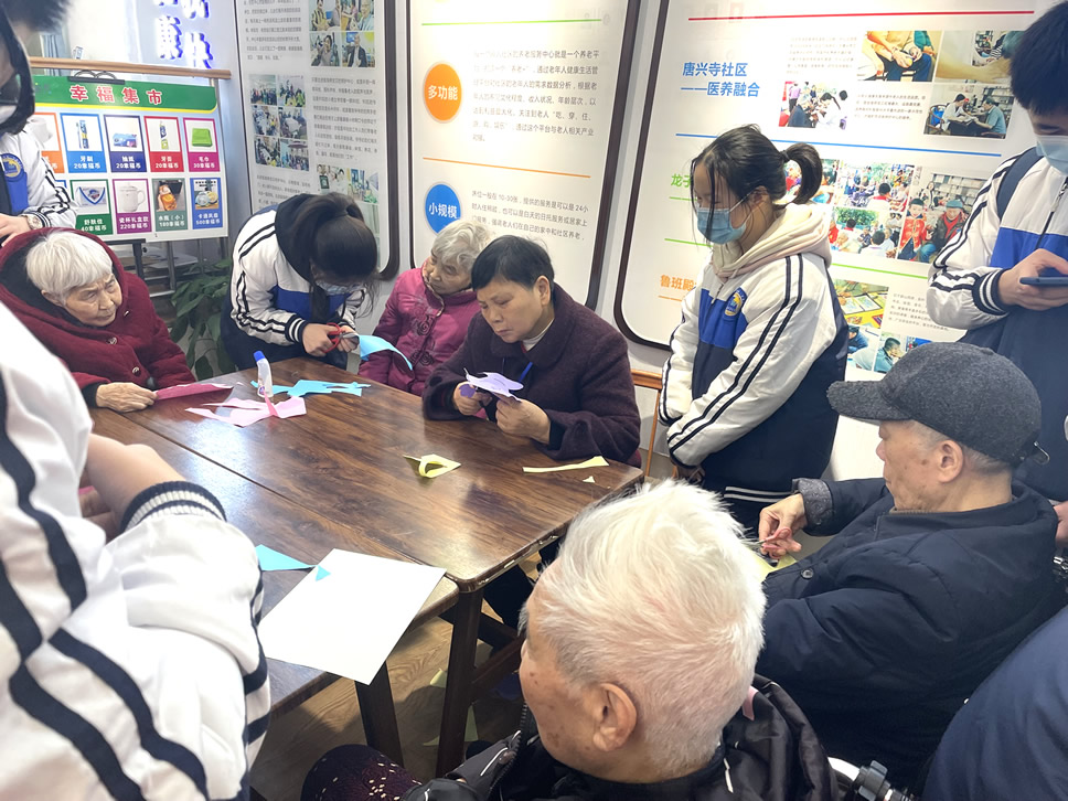 當(dāng)爺爺奶奶們看到一張張青春充滿活力的臉龐圍繞在他們周圍,心中也不由得輕快了許多。有同學(xué)自告奮勇,提出為爺爺奶奶表演節(jié)目,于是一幕幕精彩的畫面,輪番上演。熱情洋溢的拉丁舞,朝氣蓬勃的紅歌合唱,青春的力量無不感染著爺爺奶奶們,那一刻他們的激情也被點(diǎn)燃了,他們忘記了吃飯的時(shí)間,甚至不覺得身體疲憊,最后在依依不舍的掌聲中歡送走了這群活力滿滿的孩子們。