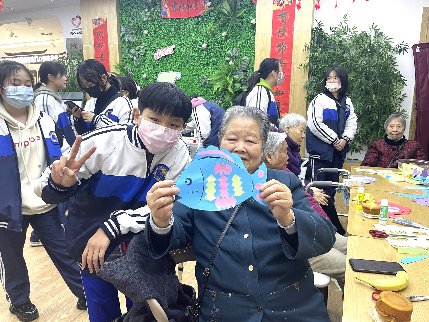 “爺爺奶奶們好!”還未瞧見人一聲聲清脆響亮的問好聲便已傳了進(jìn)來,在老師及工作人員的組織下同學(xué)們有序進(jìn)入到院內(nèi)并配合做好疫情防控登記。不一會(huì)兒,同學(xué)們陸續(xù)找到爺爺奶奶進(jìn)行自我介紹,并以一對(duì)一的形式來協(xié)助他們完成今天的手工作品“年年有魚”。
