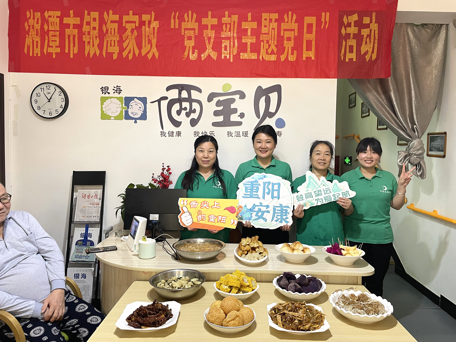 金秋送爽,丹桂飄香。一年一度的國(guó)慶、重陽(yáng)一不小心撞了個(gè)滿懷!銀海倆寶貝為豐富入住長(zhǎng)者的精神文化生活,特在近日舉辦了為善養(yǎng)老幸福銀行換購(gòu)活動(dòng)和“舌尖上的重陽(yáng)”美食園游會(huì)活動(dòng)。