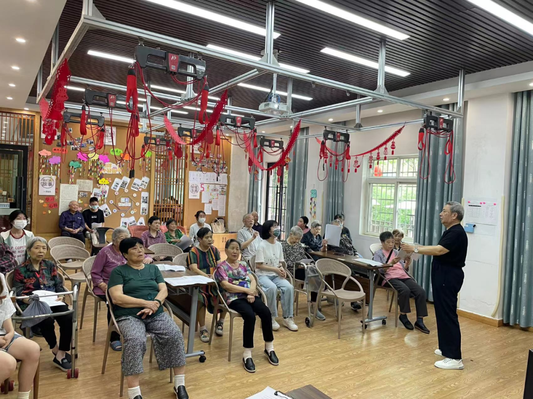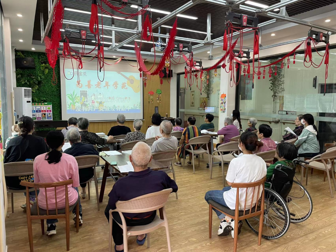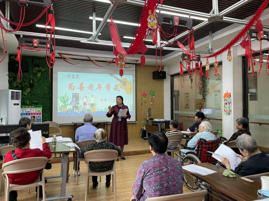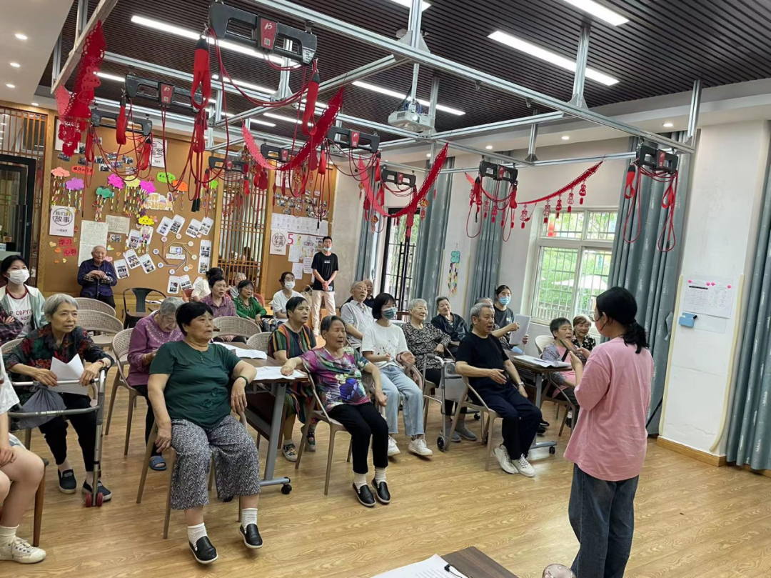 將“老年大學(xué)”開辦至養(yǎng)老機構(gòu)內(nèi)部,結(jié)合長者們的興趣愛好和學(xué)習(xí)需求,開設(shè)興趣課程,讓長者養(yǎng)老不孤單……銀海倆寶貝嘗試與科大木槿感恩支教團合作,推動老年人發(fā)展晚年興趣愛好,培養(yǎng)積極的生活態(tài)度,在“精神養(yǎng)老”模式上做出新的探索。