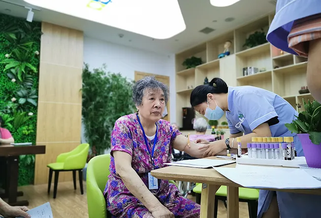 在倆寶貝照護人員的配合下,體檢項目有條不紊地進行開來,老人們在醫(yī)護人員的引導下,依次等待候檢。