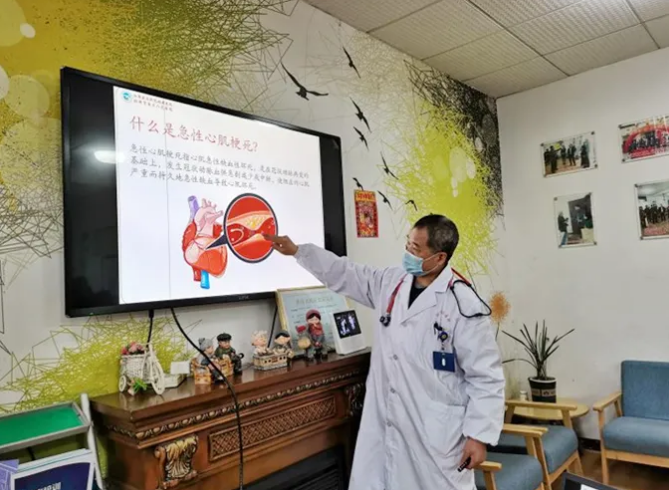 春節(jié)期間,銀海倆寶貝養(yǎng)老服務(wù)中心聯(lián)合市三醫(yī)院副主任醫(yī)師奉佳山來到紗廠街長者之家內(nèi),為工作人員普及心肌梗塞相關(guān)知識。